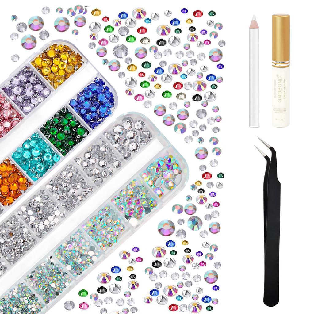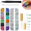 Sparkling Facial Gemstone Sticker Set Flat Bottom Colorful&AB Water Diamond Tweezers for Body Makeup Nail Art Eye Jewelry Decora