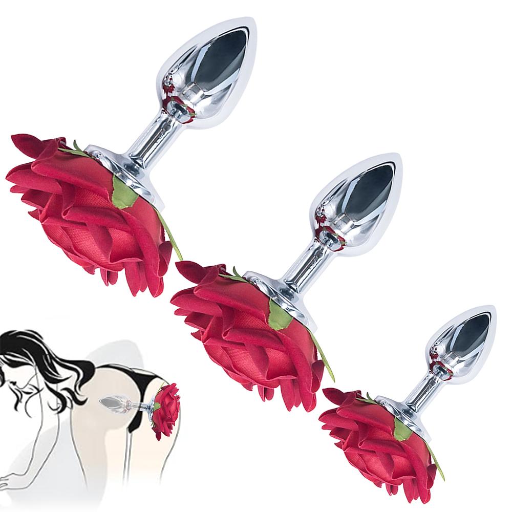Rose Flower Shaped Metal Anal Plug Prostate Massager G-point Climax Stimulator Butt Plug Anal Trainer for Couples Men Women 18+