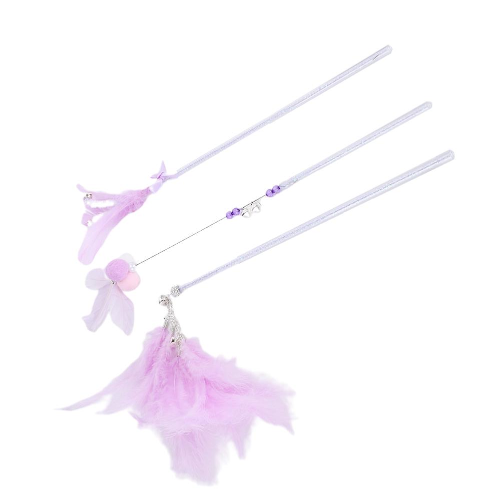 3er Set Katze Lustiger Stab Zauberstab Schleifendesign Haustier Teaser Spielzeug mit Knuspriger Glocke und Feder