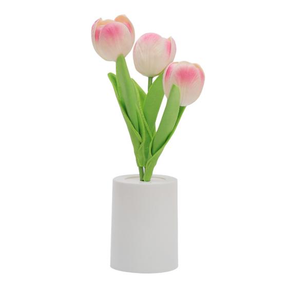 This tulip night light combines eco-friendly, battery-powered convenience with elegant design. Operating on 3 AA batteries (not included), it requires no power socket, making it energy-saving and versatile for any space. The built-in soft light emits a warm, soothing glow, perfect for bedside or desktop use, creating a cozy and relaxing atmosphere.