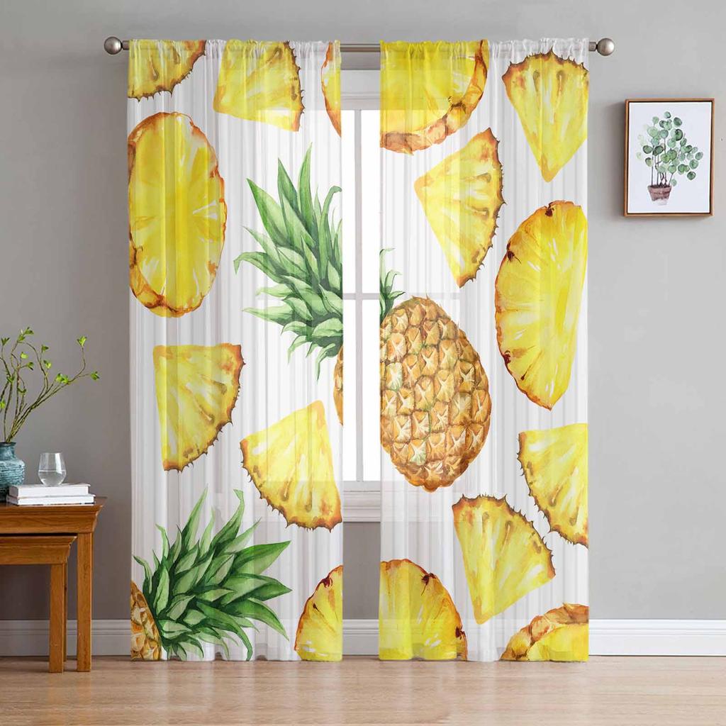 Aquarell Ananas Textur Tüll Fenstervorhänge für Schlafzimmer Luxuriöse Heimdekoration Vorhänge im Wohnzimmer Chiffon Paneele