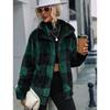 GMXIA Autumn and Winter Women's Long-sleeved Stand-up Collar Checkered Print Regular Mid-length Zipper Double-sided Plush Coat