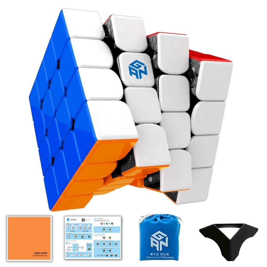 GAN460M 4x4x4 Cube with Black Interior, Built-in Magnets, Stickerless, Includes Japanese Version Strategy Guide, Stand, and Cleaning Cloth (GAN460M)