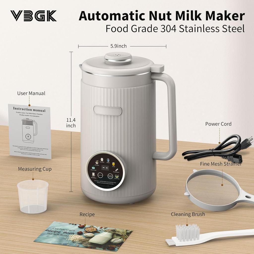 8-in-1 Automatischer Nussmilchbereiter mit 20 Klingen, 40 oz für hausgemachte pflanzliche Milch & Getränke, Startverzögerung, Warmhaltefunktion, Selbst reinigend