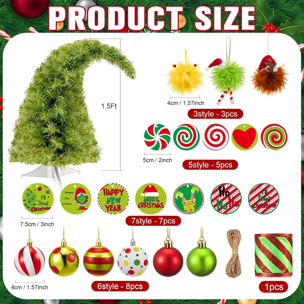 1.5ft Bendable Christmas Tree 18' Mini Artificial Desktop Tree with LED Lights & Ornaments (Lime Green)