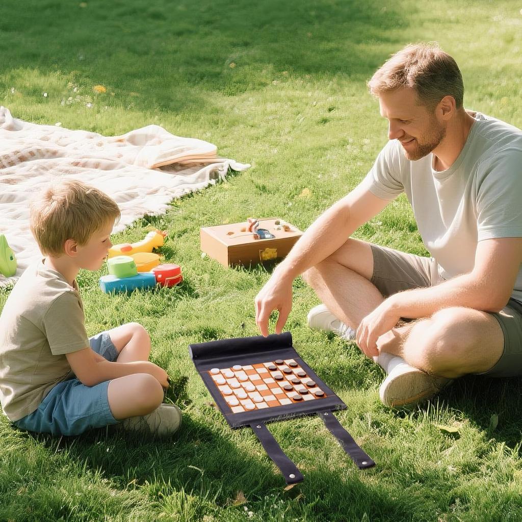 3-in-1 Travel Chess Checkers Backgammon Set, Roll-up Leather Game with 32 Pearl Pieces & 5 Dice, Portable Strategy Board Game fo