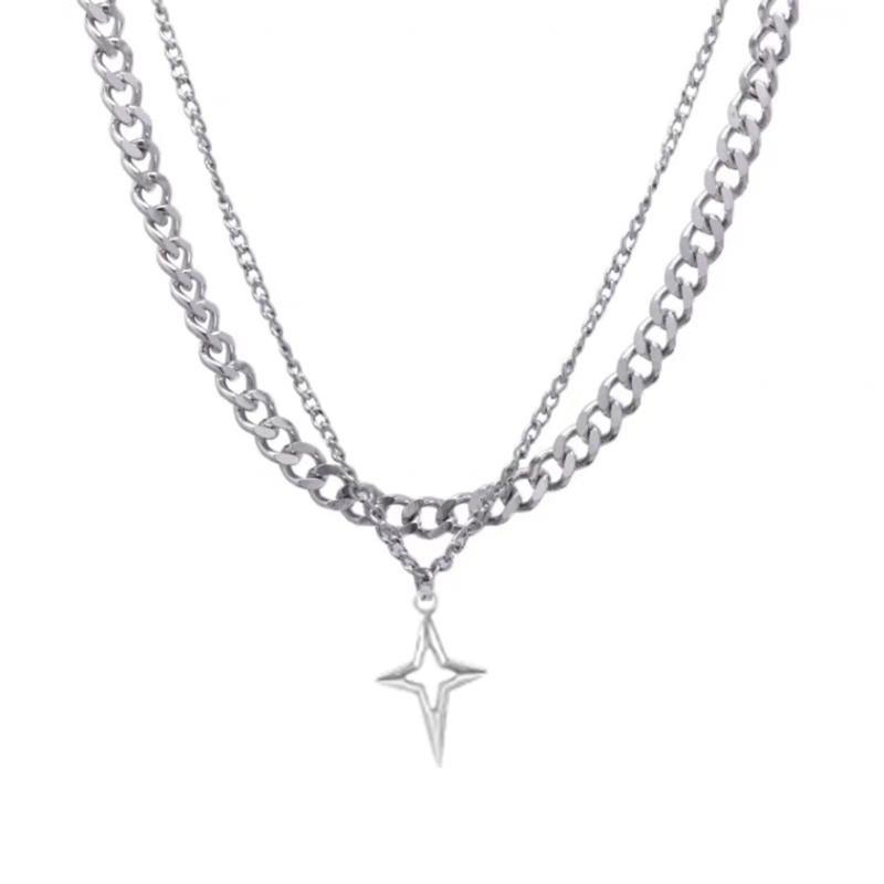 Double Layer Star Necklace Adjustable Length Zinc Alloy Lightweight Jewelry For Women Men Layering Designs Neckchain