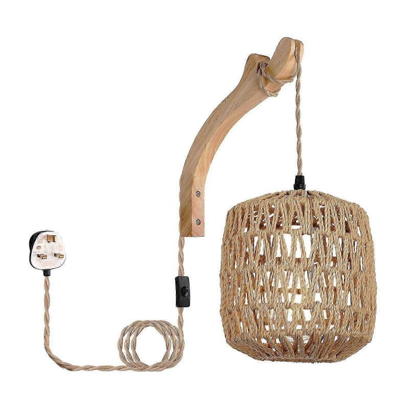 Wandleuchte, Handgewebter Schirm Wandmontierte Lampe Pendelleuchten, Boho Wandleuchte
