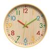 Bunte Ziffern Wanduhr Leicht lesbar Leises Uhrwerk Holzmaserung Batteriebetriebene Uhr für Heim-, Büro-, Klassenzimmerdekorationen