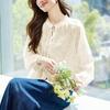 Schwarzer Pilzkragen Weißes Hemd für Damen Langarm Sommer Baumwolle Stickerei Aushöhlen Top für Damen Besticktes Hemd