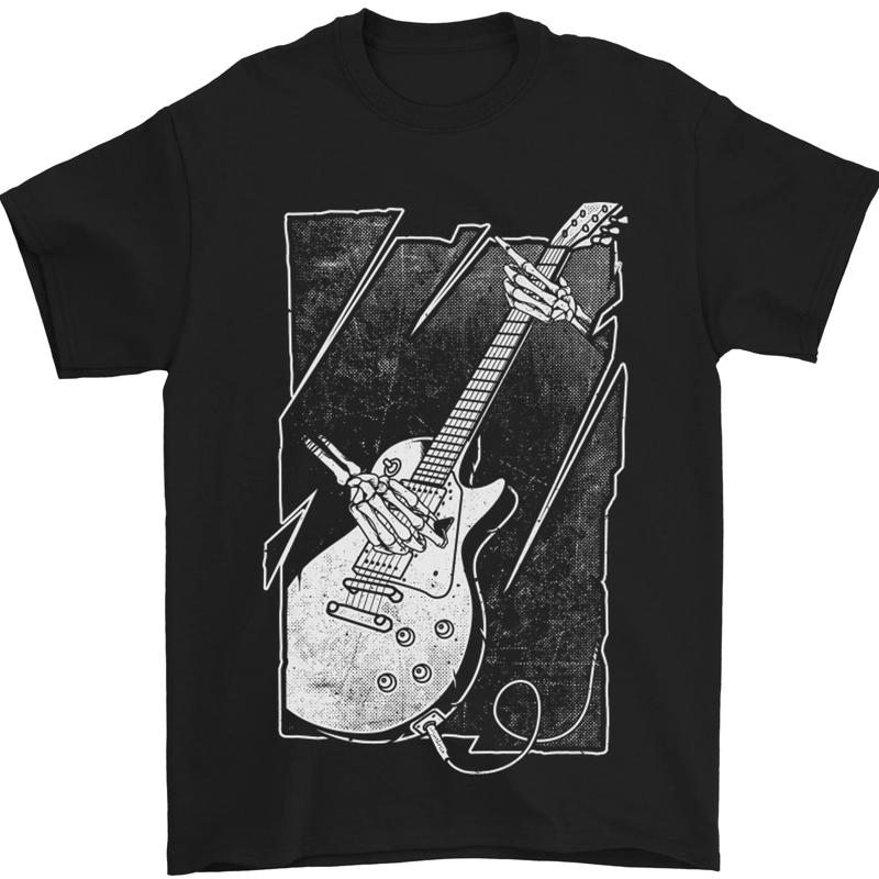 Skelett spielt Gitarre Gitarrist Elektrisch Herren T-Shirt 100% Baumwolle