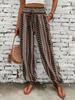 Frühling/Sommer Damen Böhmischer Ethno-Print Locker Schlankmachend Drapierte Elastische Taille Aufgeschlagene Lässige Hose