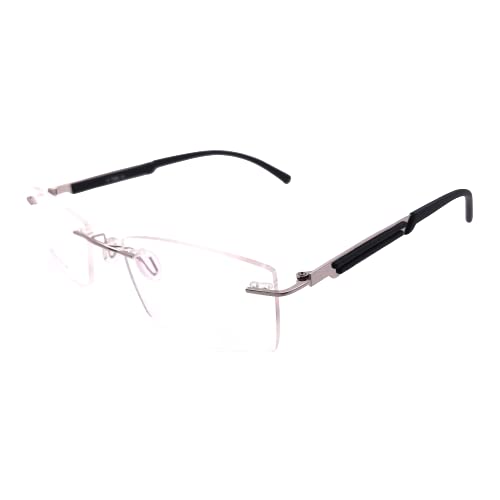RSINC Randlos Leichtgewicht, Flexibler Rahmen/Brille/Sehhilfe, Für Männer und Frauen, Modern, Business, Collage, Mode, Schule, Damen, Sport, Silber - Schwarz IB-1