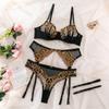 Golden Chain Embroidery Lingerie Exotic Sexy Lingerie Sets For Women Transparent Floral Lace Bra Panty Garter Porn Underwear