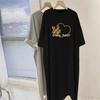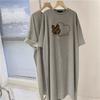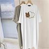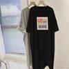 Kurzarmkleid Damen Sommer Übergröße Schlank Baumwolle Mittel und Lang T-Shirt Rock Über Knie Lässig Langer Rock