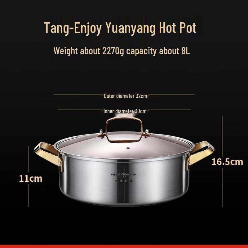 JINGRX 304 Edelstahl Verdickter Induktions-Hot Pot mit Trennwand, 30cm