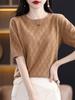Modisches Lochstrick-Baumwoll-Kurzarm-T-Shirt für Damen im Sommer Neues Rundhals-Lockeres T-Shirt Halbarm-Top