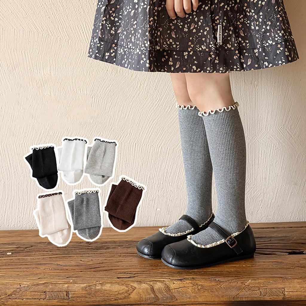 4-8J Süße Rüschen Mädchen Lange Socken Einfarbige Gestrickte Kniestrümpfe Frühling Herbst Kinder Baumwollsocken