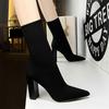 Herbstmode Schlichte Metallfarbe Quadratische Absätze Sockenstiefel Damen Stretchstoff Elastisch Spitzschuhe Stiefelette