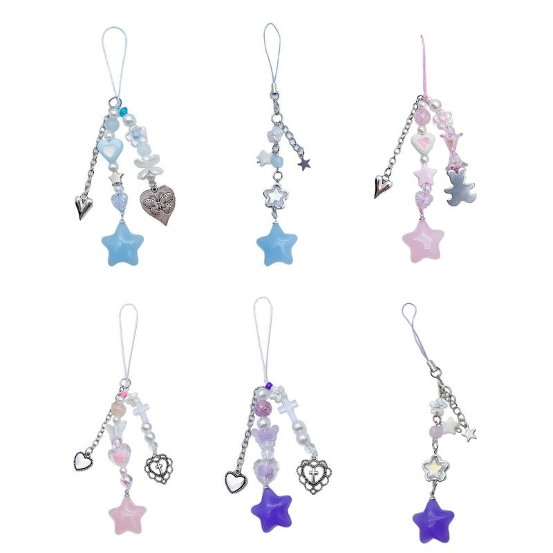 Cute Star Bead Tassels Pendant Phone Straps Lanyard Pocket Keychain Strap Backpack Charm Car Keys Decoration Chain