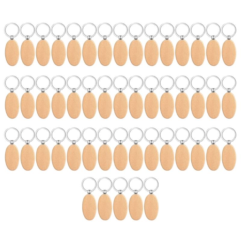 50 Stück Blanko Schlüsselanhänger aus Buchenholz Metallschlüsselanhänger Rechteckig/Rund/Oval- Holzgravur DIY Schlüsselanhänger Set Schlüsselanhänger Basteln