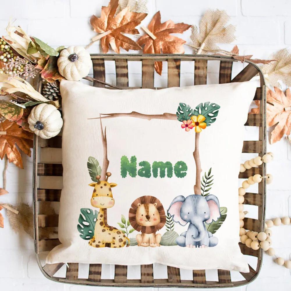 Animal Print Pillow Case Personalized Custom Name Pillow Dust Cover Bedroom Party Decoration Day Children Birthday Gift
