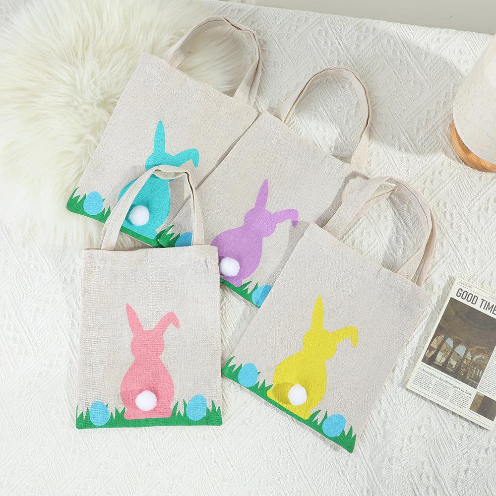 Easter Bunny Gift Handbags Cute Stuffed Ball Tote Bag Basket Kids Candy Goodie Rabbit Ear Bags Portable Eco Storage Container