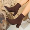 High Heels Damen Stiefeletten Wintermode Wildleder Stiefel mit Absatz Neu Eckige Zehen Elegant Damen Stiefeletten
