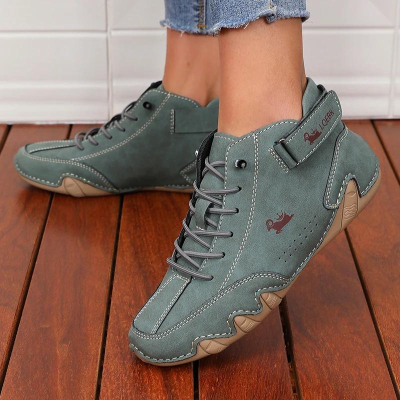 Khakifarbene Damenstiefel Trendige Bequeme Weichsohlige High-Top-Stiefel Vielseitige Modische Pendel-Motorrad-Damen-Sneakers