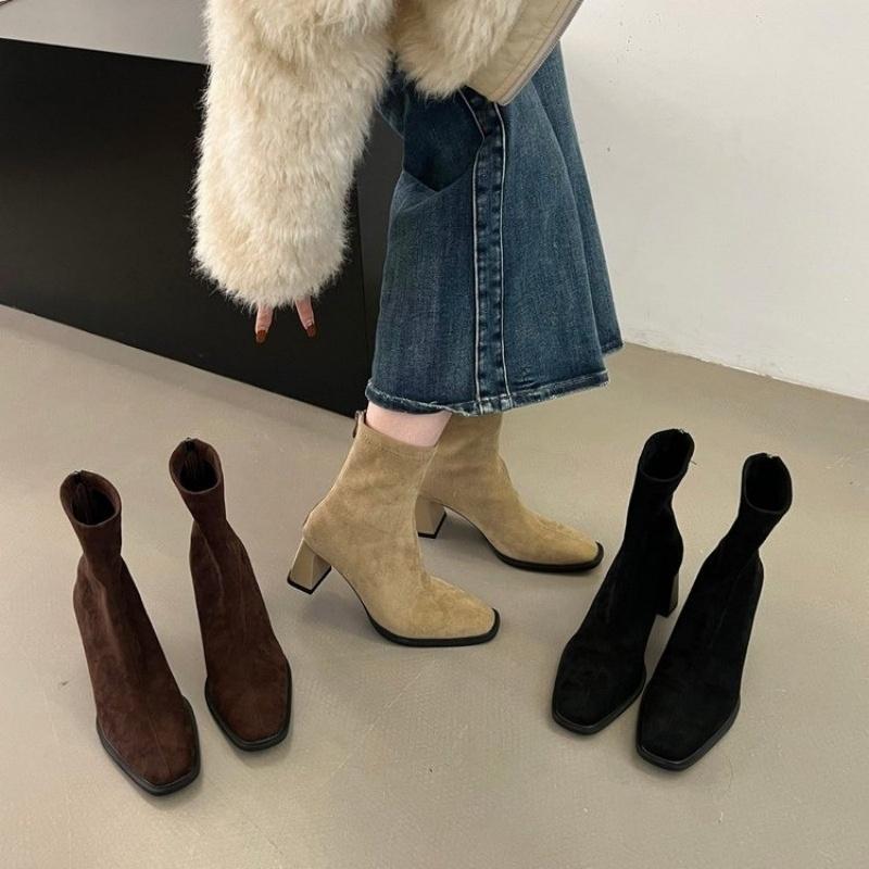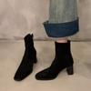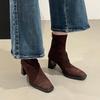 Modische neue Square Head Sexy Wildleder Lässige Arbeitsstiefel für den Winter Bequemer Reißverschluss Bankett Elegant Hohe Absätze Damenstiefel