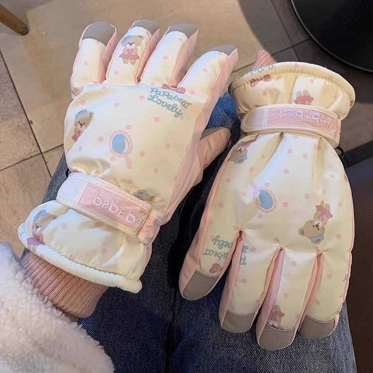 Ski gloves women's winter touch screen piled thickened warm cold windproof waterproof motorcycle riding gloves tide