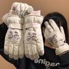 Printed ski waterproof gloves female winter cute rabbit riding touch screen velvet warm windproof and cold proof electric car