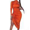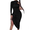 Neues Damen-Kleid mit einzelnem Schultergurt und Kordelzug, plissiert, einfarbig, eng