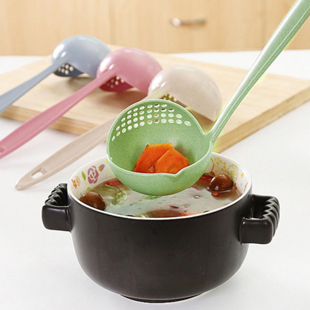 Vielseitiges Küchenutensil: Servieren Sie heiße Suppen, Eintöpfe oder gießen Sie Nudeln mühelos ab mit diesem 2-in-1 Suppenschöpflöffel aus Kunststoff, einem vielseitigen Werkzeug für verschiedene Gerichte.