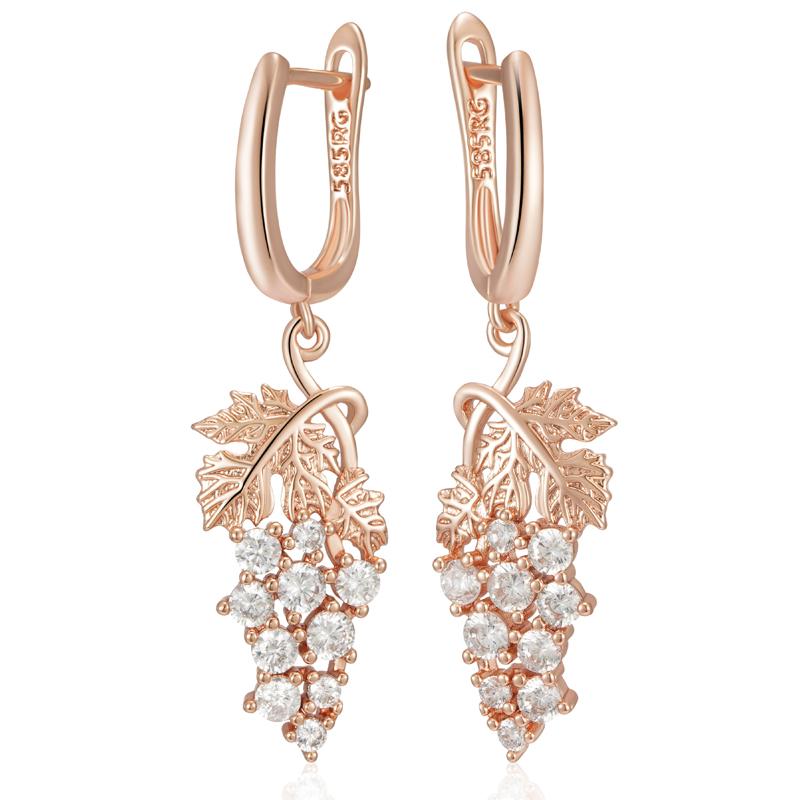 Kienl Full Shiny Natural Zircon Long Drop Earring For Women Rose Gold Color Unique Crystal Grape Daily Vintage Jewelry