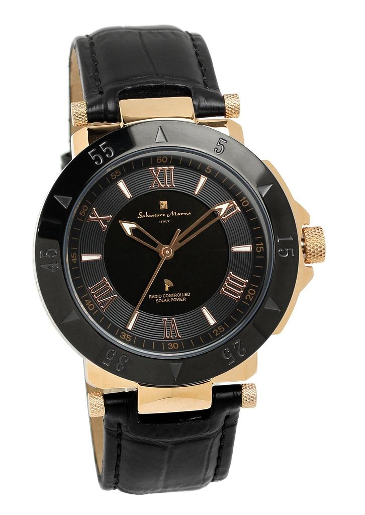 Salvatore Marra Pink Leather Men's Watch, Gold, Black, Radio-Controlled Solar, Strap, SM18112S-PGBK