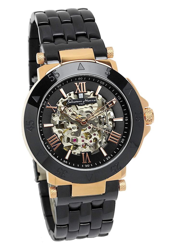 Salvatore Marra Automatic Skeleton for Business and Formal Wear Men's Watch, Black,