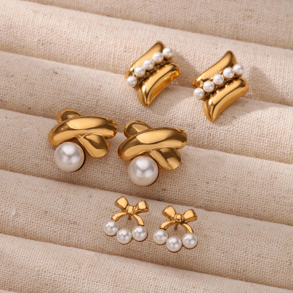 Vintage Geometrische Perlen-Steckohrringe Für Damen Goldfarbe Edelstahl Schmetterling Ohrring Hochzeit Weihnachten Schmuck Geschenk Bff
