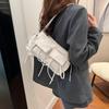 Retro Underarm Bag Double Pockets PU Leather Shopping Bag Fashion Solid Designer Armpit Bag Zipper Portable Ladies Chic Hobo Bag