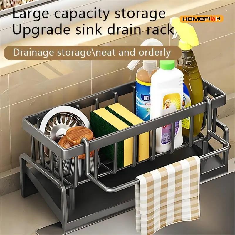 HMJ2 Multifunktionaler Küchenschwammhalter Abtropfgestell Wasser ableiten Platz für Spülmittel Lappen organisieren Kapazität Arbeitsplatte und Gegenstände aufbewahren