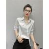 Damen Neues Genähtes POLO-Kragen Knopfleiste Mode Einfarbig Vielseitig Schlank Lässig Langarmhemd