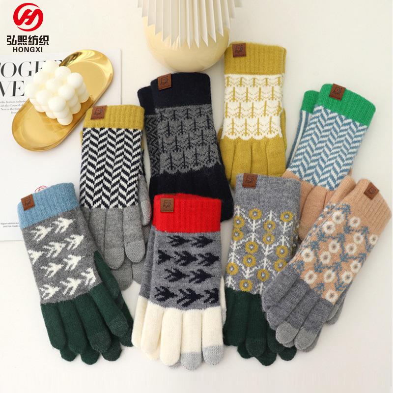 Japanischer Herbst und Winter Explosion Wolle kontrastierende Wolle gestrickte Handschuhe Retro Jacquard Samt Radfahren warme Handschuhe