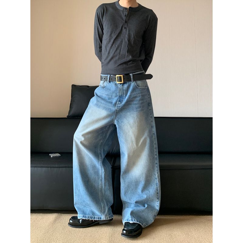 Cabbage Coke American Retro Simple Jeans Trendy Brand Loose Wide-Leg Pants Casual Straight-Leg Trousers for Men and Women