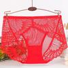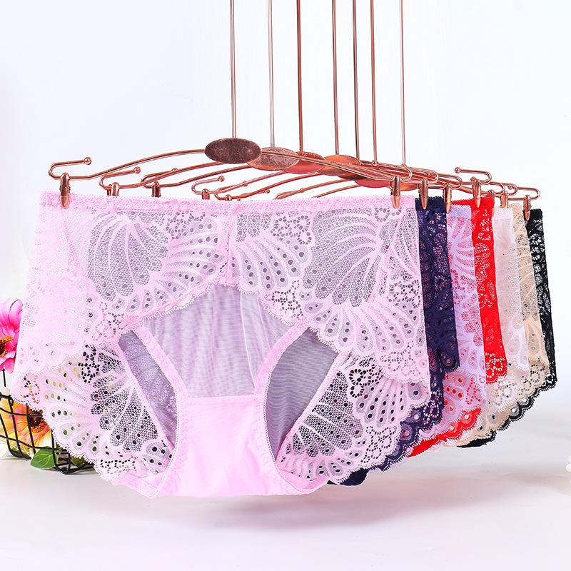 Damen Sexy Spitze Mid-Waist Transparent Panties, Nahtlos Übergröße, Reiner Baumwollzwickel, Dünner Stil Dreieck