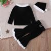Kinder Europäisches/Amerikanisches Dreiteiler-Set: Langarm-Oberteil, Schlaghose & Hut für Frühling/Winter/Weihnachten