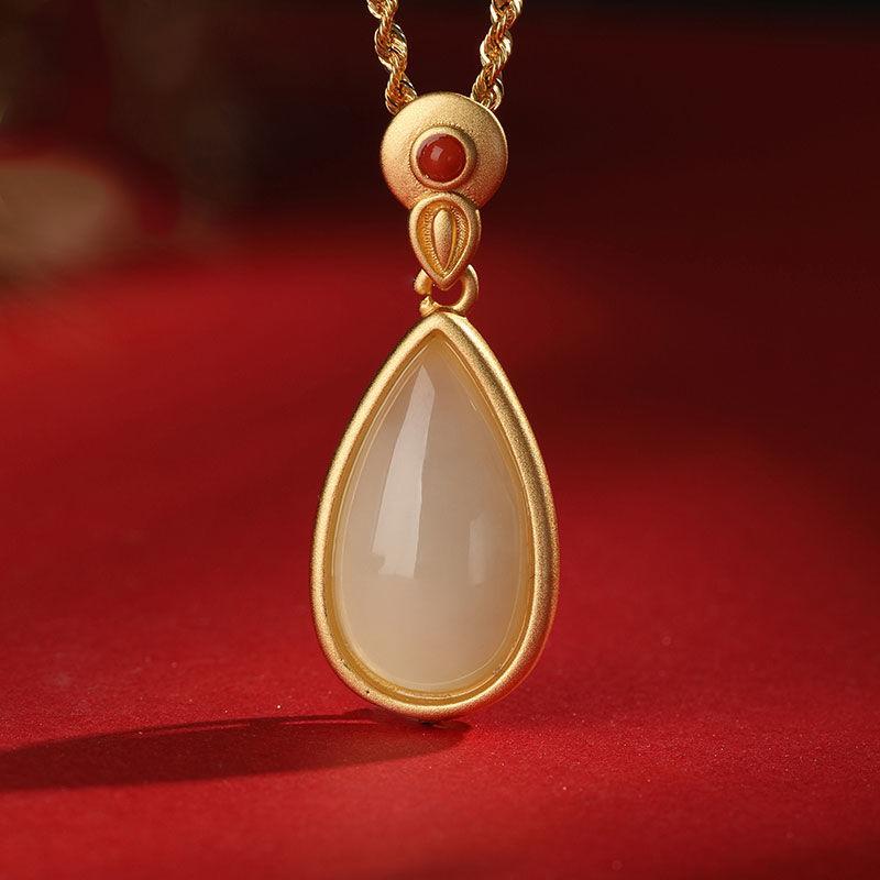 Natural Hetian White Jade Drop Shape Pendant Necklace Small And Exquisitely Designed Charm Elegant Luxury Ladies Jewelry