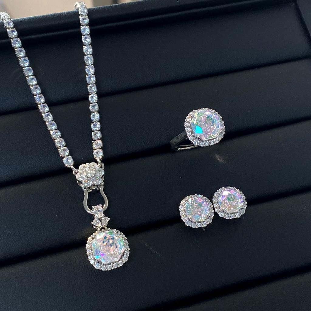Top Qualität Aaa Bunt Zirkonia Ring Ohrringe Anhänger Halskette Sets Für Frauen Mode Hochzeitsparty Verlobungsschmuck