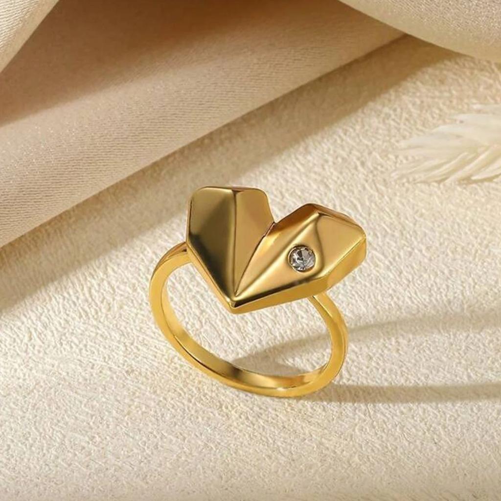 Zircon Heart Rings For Women Men Gold Plated Stainless Steel Heart Ring Wedding Engagement Aesthetic Jewelry Gift