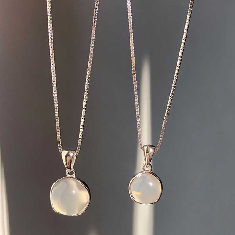 Luxuriös vergoldete weiße runde Mondstein-Anhänger-Halsketten für Damen Modeschmuck Choker Schlüsselbeinkette Kurze Charm-Halskette
