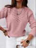 Auf Lager: Europäisch-amerikanischer Stil Einfarbig Jacquard Lochmuster Gespleißt Rundhals Elegant Damen Wollpullover 2022